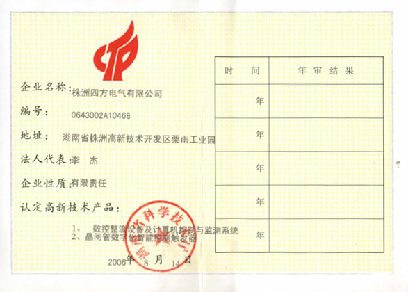 高新技術(shù)企業(yè)認(rèn)定證書(shū)