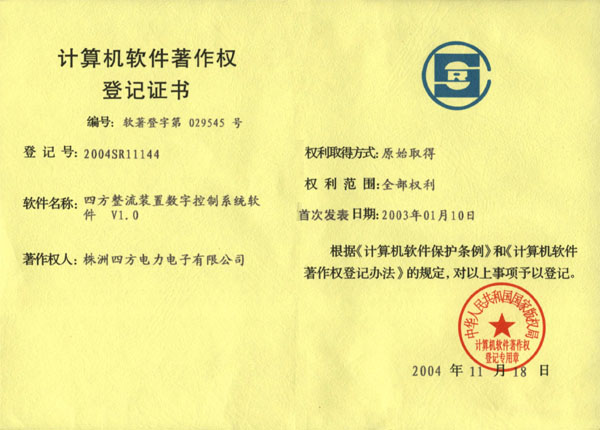 計(jì)算機(jī)軟件著作權(quán)登記證書(shū)(整流裝置)