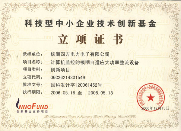 創(chuàng)新基金驗(yàn)收證書(shū)