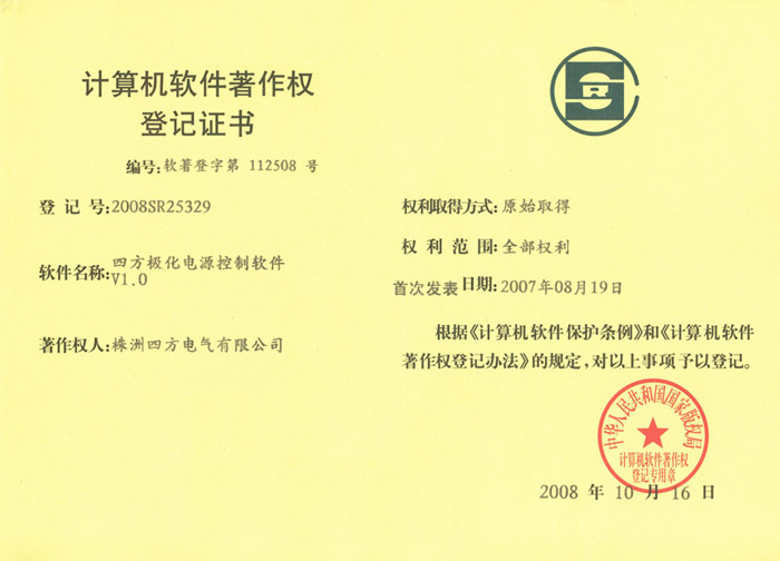 計(jì)算機(jī)軟件著作權(quán)登記證書(shū)(極化電源)